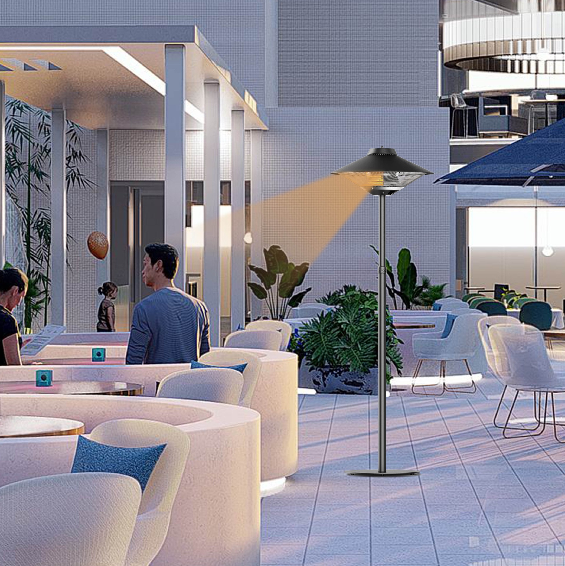 Annular Eclipse Patented structure: DONOT heat the central space underneath but around the heater. Leaving your cool Wine, chill Beer/Champagne/Whisky as they are while, you enjoy warmth seating around or standing with the drinks in hands. (Non-difference heating is also available, but won’t have these features.)